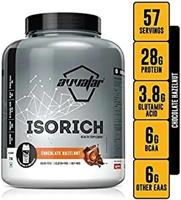 AVVATAR ISORICH WHEY PROTEIN | 2Kg | Chocolate Hazelnut Flavour | Made with 100% Fresh Cow's Milk