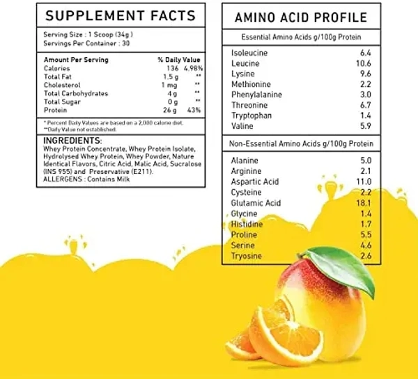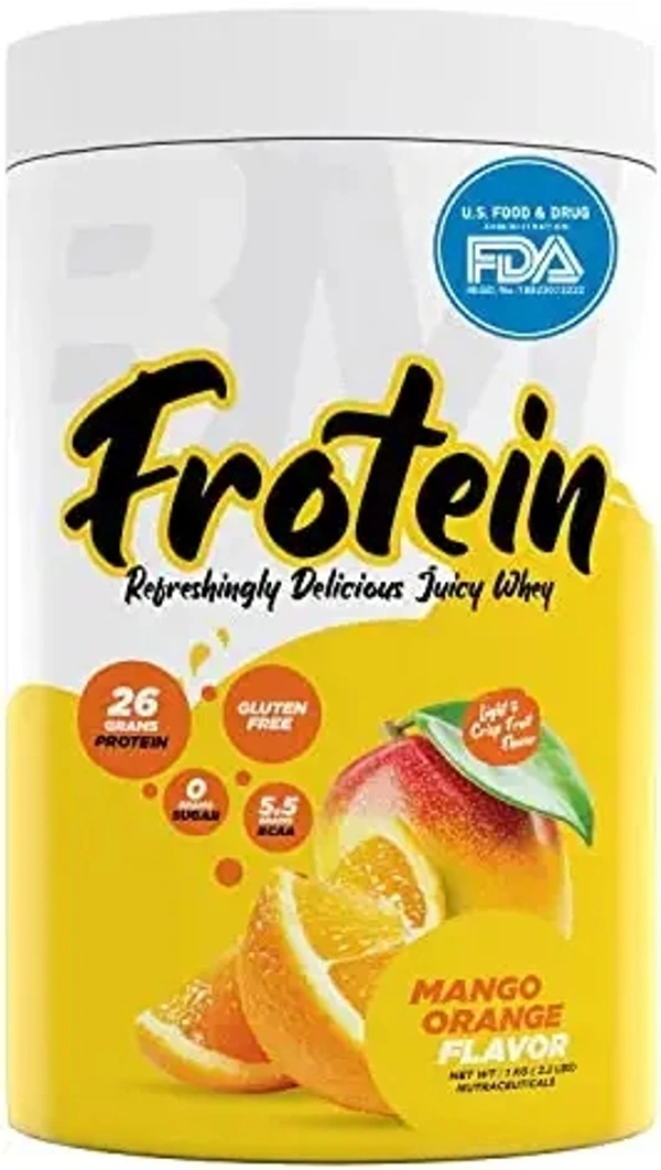 BIG MUSCLES FROTEIN JUICY WHEY l 26GM PROTEIN, 0GM SUGAR, 5.5GM BCAA l 1KG (2.2LBS) (MANGO ORANGE)