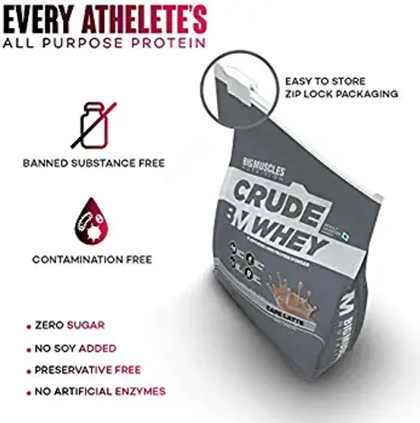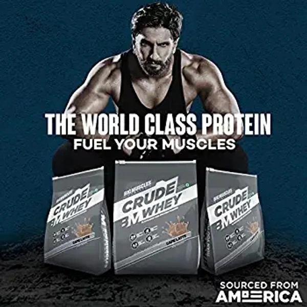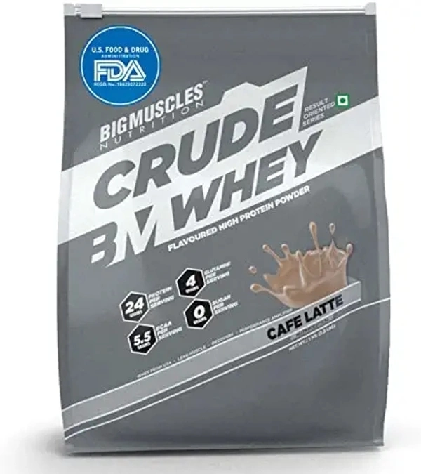 Bigmuscles Nutrition Crude Whey - 1 kg (Cafe Latte) | US FDA REGD. BRAND | Whey Protein Concentrate 80%, 24g Protein, 5.5g BCAA, 4 g Glutamine