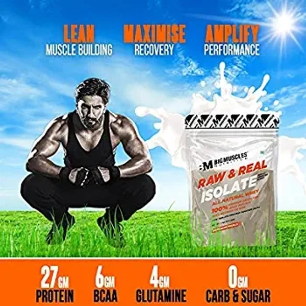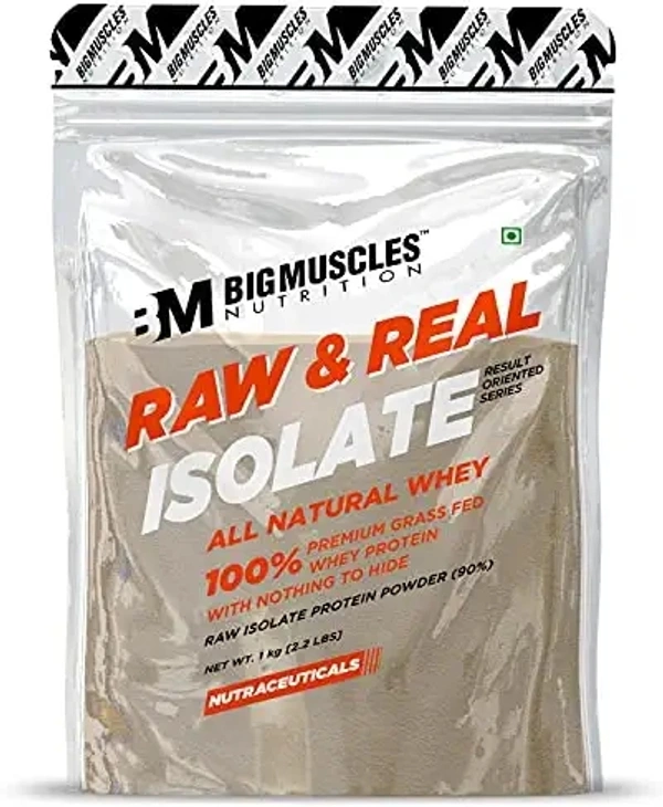 Bigmuscles Nutrition Raw & Real Isolate Organic Whey Protein Powder [Pack of 1Kg] | Natural 90% Isolate Whey Protein | Additives Free | Unflavored | 27g Protein With 5.5g BCAA & 4g Glutamine