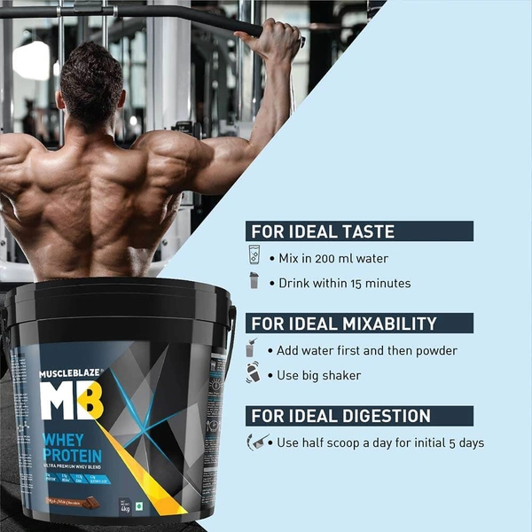 MuscleBlaze 100% Whey Protein Supplement Powder with Digestive Enzyme, 121 Servings (Rich Milk Chocolate)