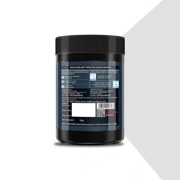 MuscleBlaze Creatine Monohydrate, India's Only Labdoor USA Certified Creatine (Unflavoured)