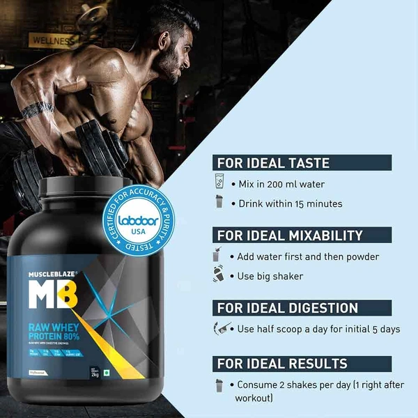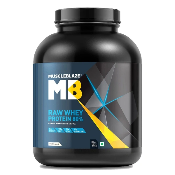MuscleBlaze 80% Raw Whey Protein Supplement Powder, 2 kg (4.4 lb), 66 Servings (Unflavoured)