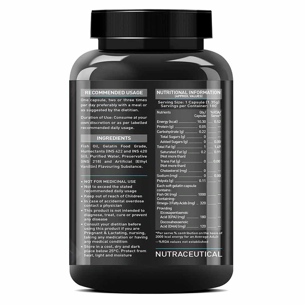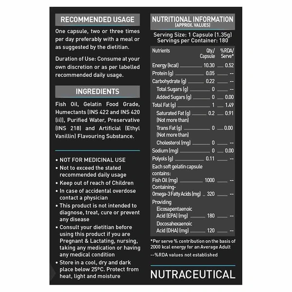 MuscleBlaze Fish Oil 1000mg comes with accurate label claims with each soft gel providing 180mg EPA & 120mg DHA
