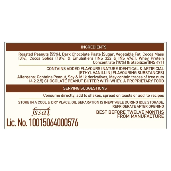 MuscleBlaze High Protein Peanut Butter, 0.340 kg, Dark Chocolate Creamy
