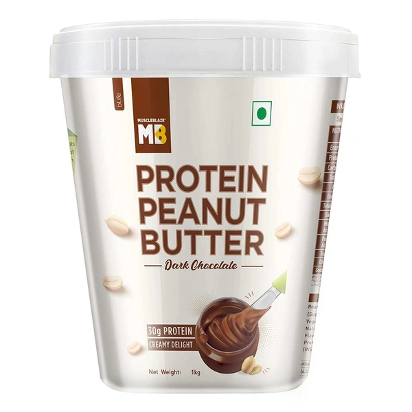 MuscleBlaze High Protein Peanut Butter, 1 kg, Dark Chocolate Creamy