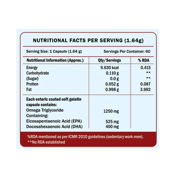 - 1250mg Omega-3 Fatty Acid
